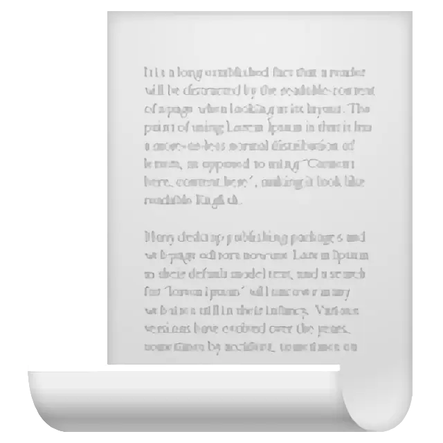 A curled page. It's essentially a white paper sheet, curling to the down, with a text prined on it. Generally it's used to depict various types of documents and letters.